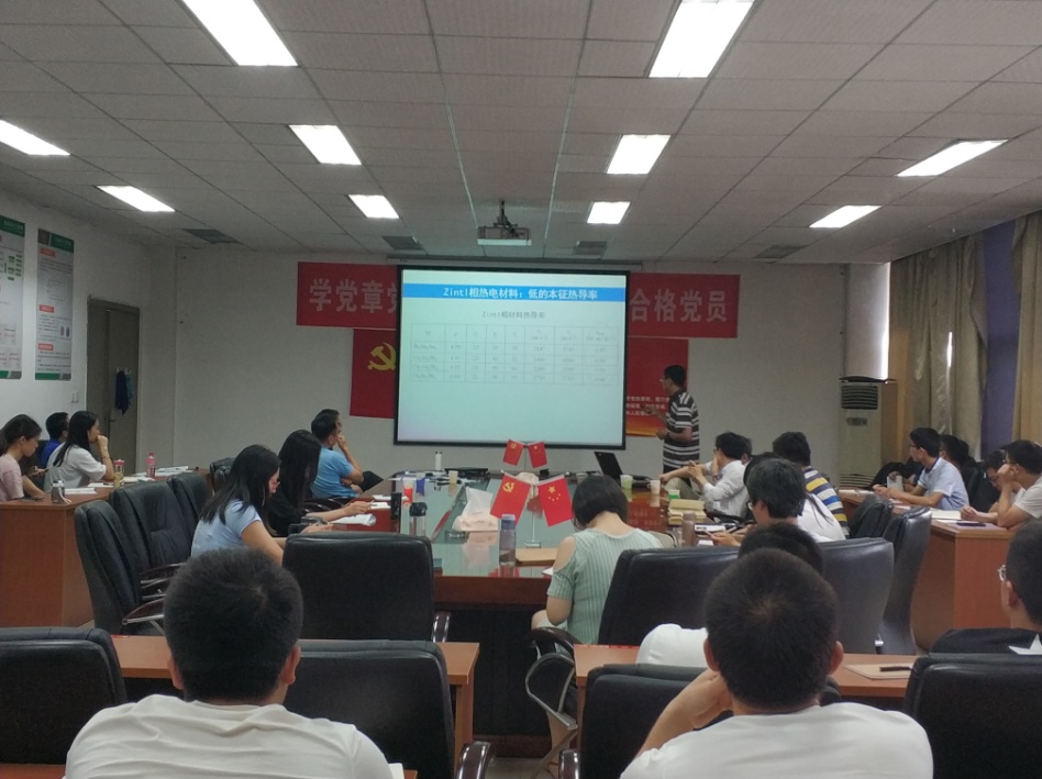 王教授的报告题目为“几种Zintl相热电材料的理论研究”,主要从热电材料的结构、物性、电子结构进行讲解,介绍了热电材料优势、以及一些典型的热电材料,如蹄化物、金属氧化物和Zintl相化合物等,他们都具有高塞贝克系数、低的热传导率和低阿德电阻等特征。然后王教授介绍了一些关于热电材料的研究进展,主要有阴离子基团排布方式对电子结构及热电性质的影响;能带结构调控改善热电性质;最优载流子浓度,热电性质对载流子的依赖等。