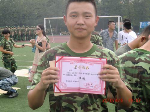 9月16日下午1点30分,西华大学军训内务竞赛在临江苑田径场正式举行,虽然烈日当空,刚下过雨的跑道也有些许潮湿,但代表各营参赛的同学们热情不减,经过紧张的初赛、复赛,我院 2013级新生郑昊获得本次叠被子大赛的第一名,董杰获得优秀奖。